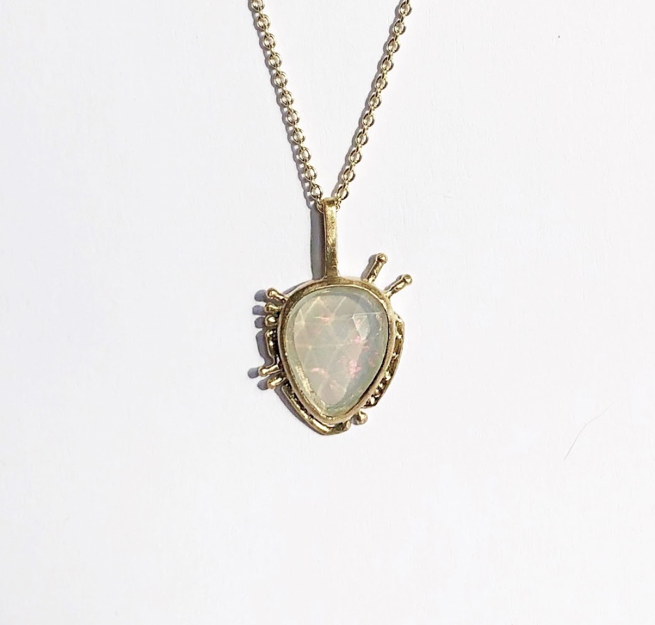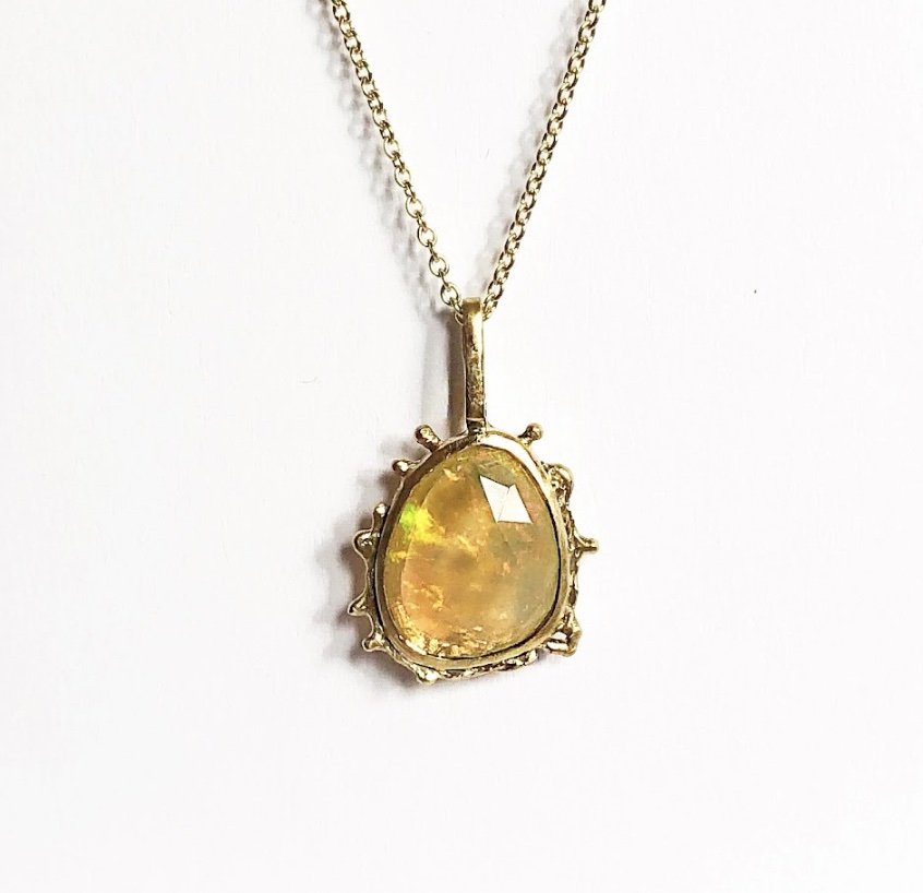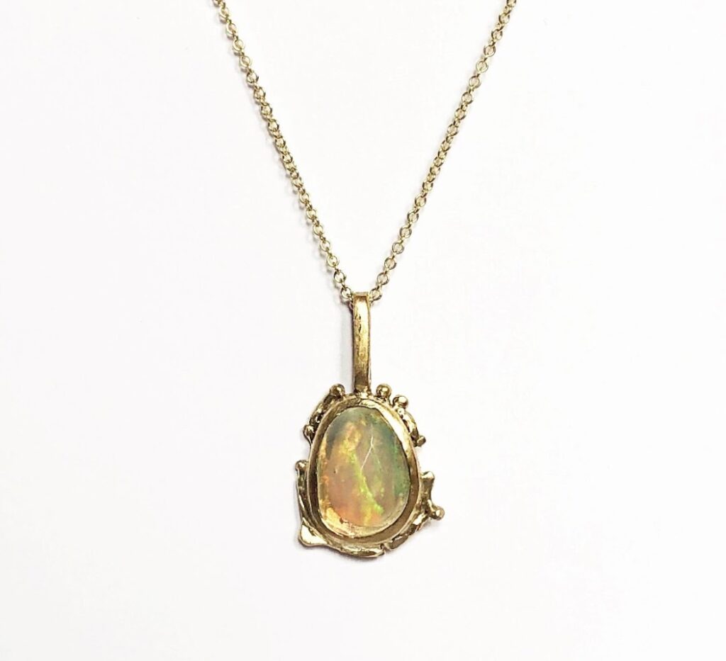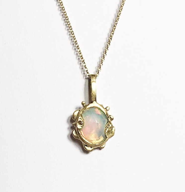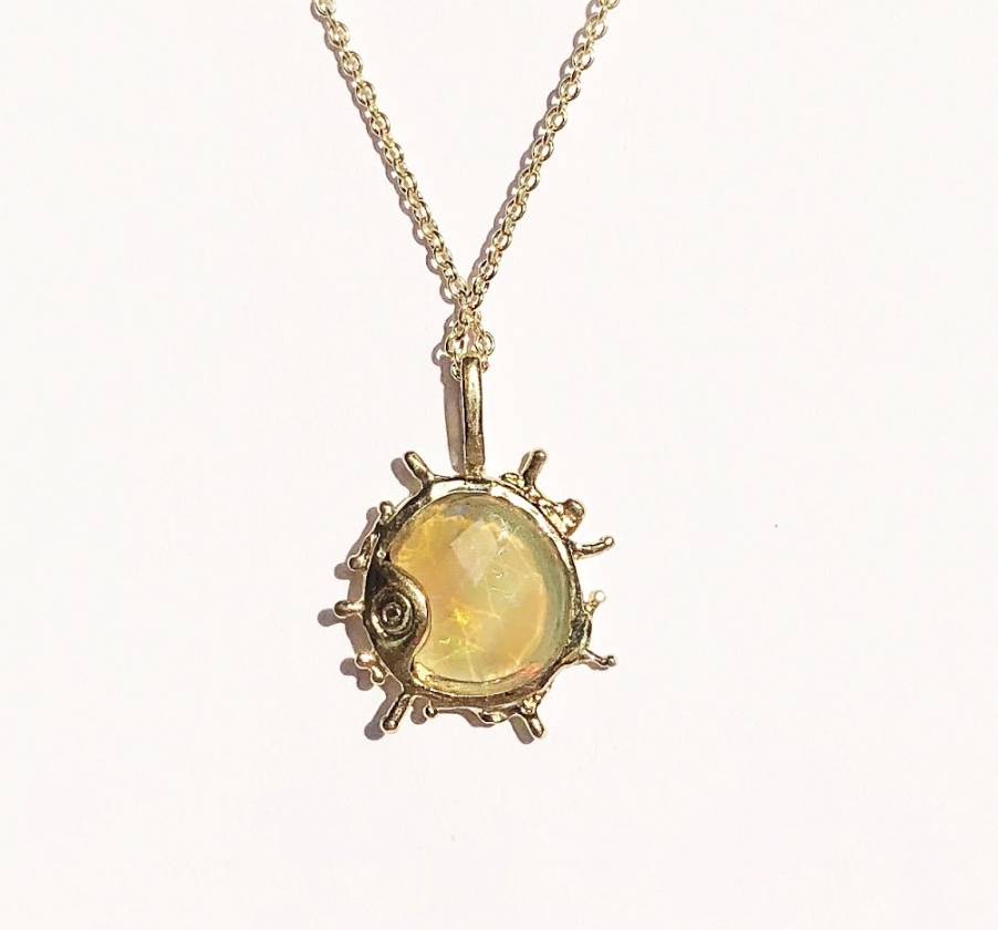 The collection “Coronal Mass Ejection” consists of five unique pendants made of 18k Fairmined gold & Ethiopian Opals.