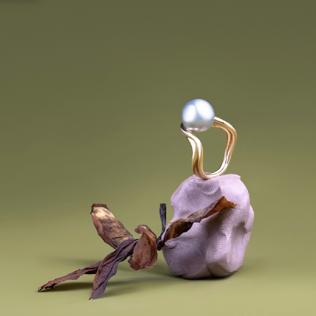 Curva Double Curve Pearl Ring with Grey Tahitian Pearl, Handmade, Casted in 14k yellow Fairmined gold