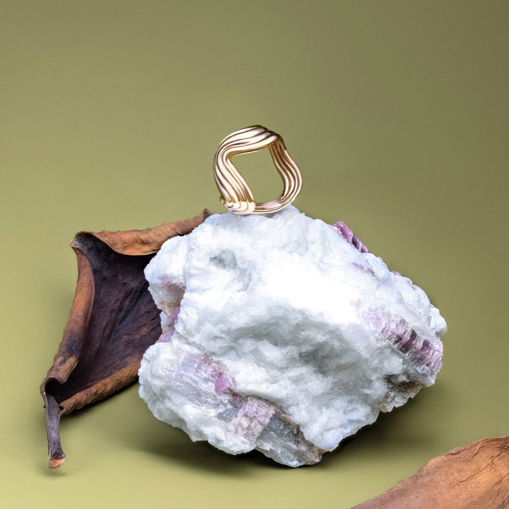 Curva Wide Band Ring, Handmade, Casted in 14k yellow fairmined gold