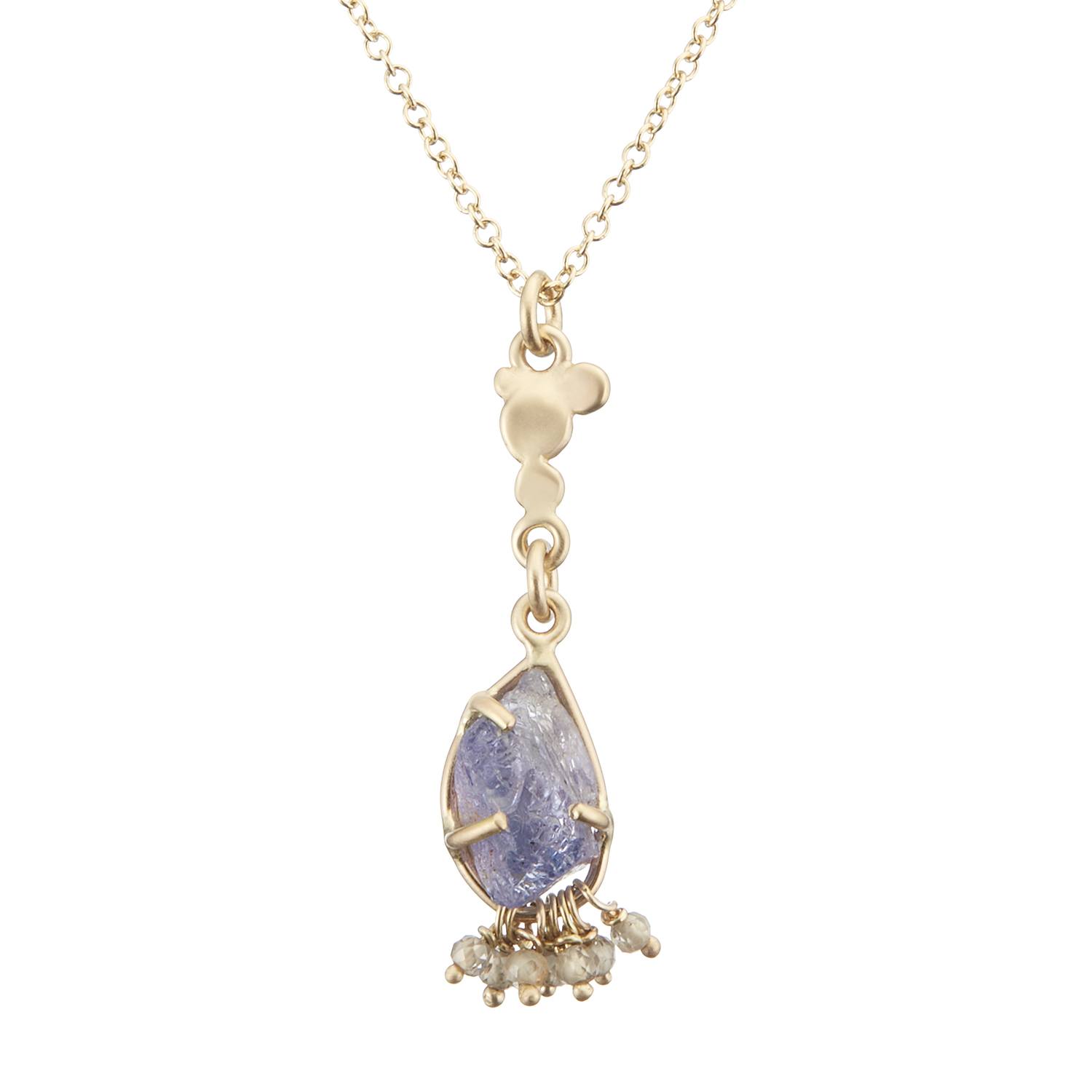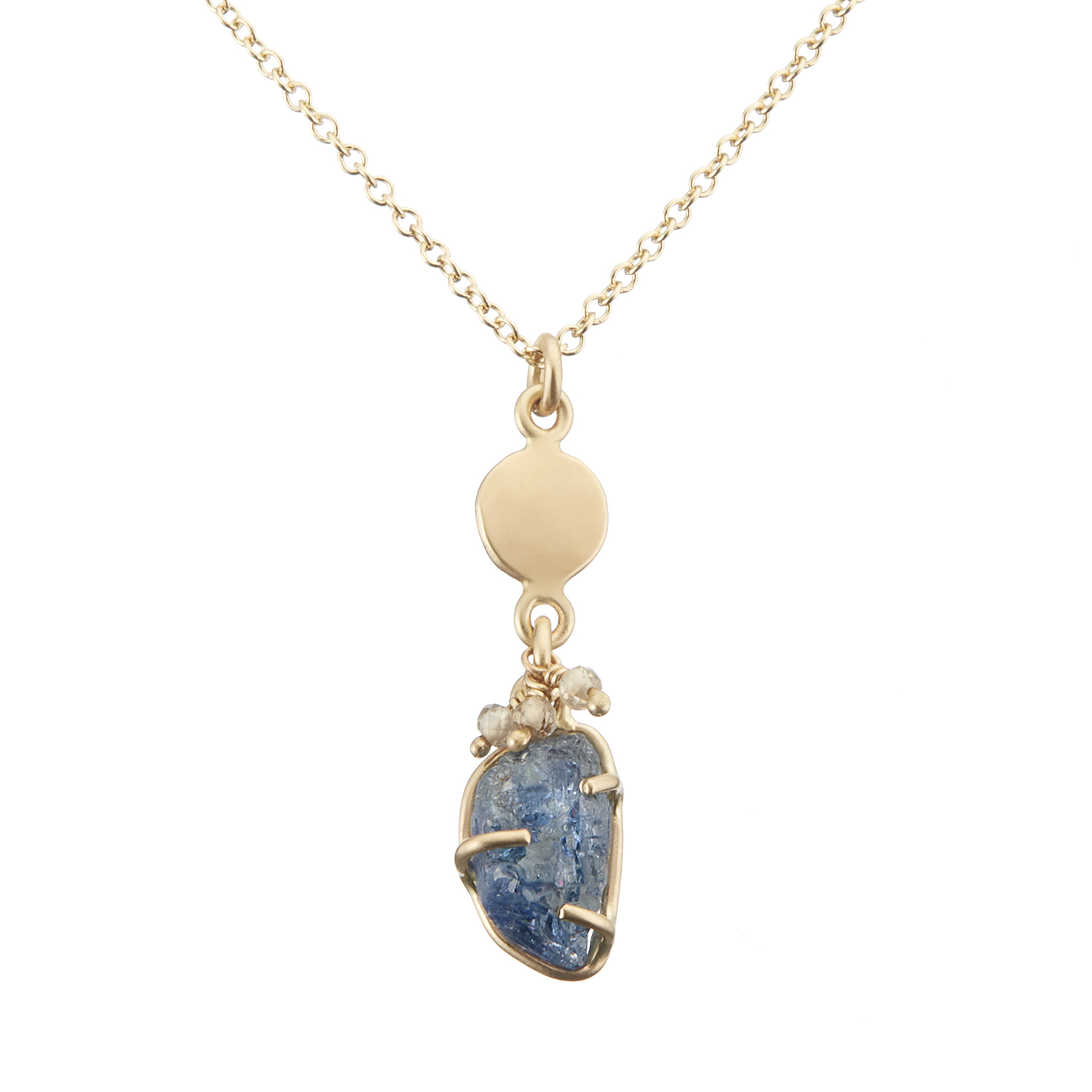 Fairmined 14k gold, 18” Fairmined 14k gold 1.2 mm wide cable chain, Umba sapphires from Moyo Gems and Tanzania zircons.